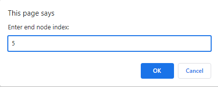 If you chose Djikstra's algorithm, then two pop-ups will appear, asking for the start and end node respectively: